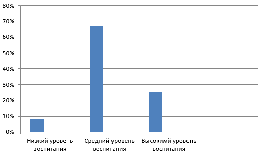 Кроме этого нами был проведен тест «Мера заботы о ребенке», предназначенный для опроса родителей. Родителям предлагается 15 утверждений, которые они должны проанализировать и высказать свое мнение по каждому утверждению. Данный тест помогает определить степень проявления заботы родителей по отношению к своим детям. Результаты данного теста таковы: большинство опрашиваемых родителей, а именно 67% заняли верную позицию в воспитании своих детей. Это говорит о том, что их дети получают достаточное количество внимания и заботы со стороны родителей, а так же наряду с этим дети имеют возможность проявлять свою независимость и взрослость. 25 % родителей набрали большее количество баллов. Это говорит о том, что все их усилия направлены на то, чтобы оградить своего ребенка от окружающей среды. Такие родители считают, что они обязаны защищать интересы ребенка. Но в свою очередь, они могут получить протест со стороны ребенка. Потому что у детей в этом случае не формируется собственное мнение, и они во многом зависят от родителей. 8% опрашиваемых родителей набрали меньше всего баллов. Эти родители уделяют мало внимания воспитанию своих детей. Они больше озабочены проблемами, связанными с работой, чем воспитания. Данные проведенного теста отображены на рис. 1.