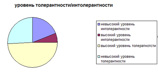 Рис. 1 – Общий уровень толерантности/интолерантности старших подростков сельской школы