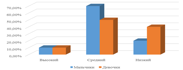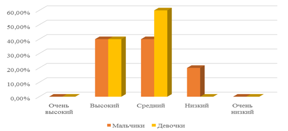 1. Первую группу составили 10,0% мальчиков и 10,0% девочек, у которых отмечается высокий уровень развития произвольности поведения.