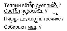 На доске отрывок из стихотворения. Учитель читает его, а учащиеся, следя за чтением учителя, указывают слова, на которых было сделано логическое ударение. Например: