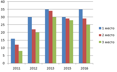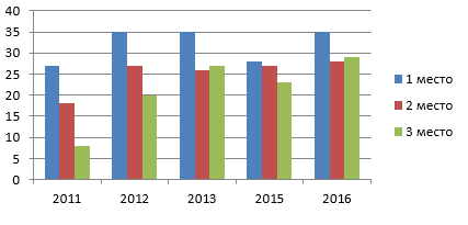 Динамика результатов 1 тура (по годам в баллах, максимальный балл -35 б.)