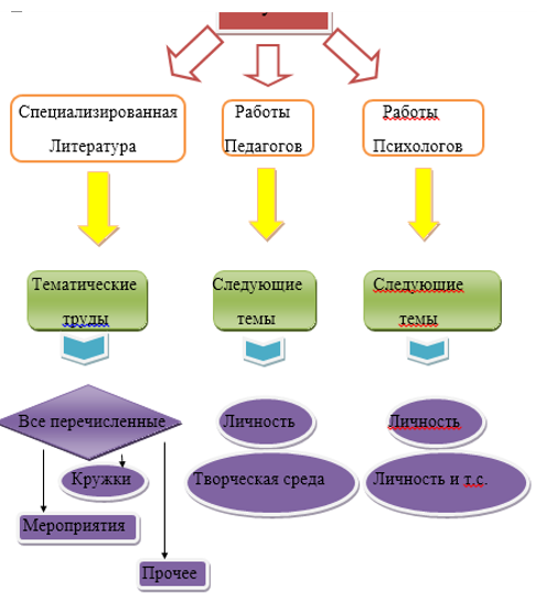 Теоретическое осмысление влияния творческой среды на личности(Л.С.Выгодский, В.В. Давыдов, И.С. Якиманская и др.) раскрывает, что в целом «воспитание» рассматривается как деятельность по развитию творческого потенциала личности. Творческая среда, по нашему мнению, – это совокупность условий окружения, предполагающие культурное влияние на личность.