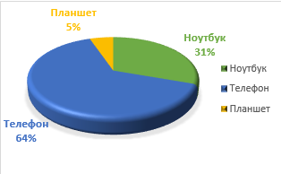 1. «Выберите техническое устройство, которое считаете самым эффективным для применения в процессе обучения».Из результатов мы видим, что телефон является самым эффективным устройством для студентов и только потом во втором месте располагается ноутбук и далее планшет. Результаты были вполне предсказуемыми, так как сейчас телефон является самым доступным, удобным и к тому же эффективным в работе гаджетом.