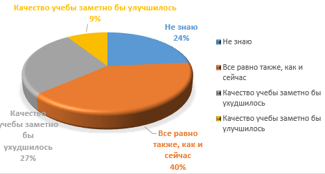 Здесь мы видим ответы студентов, где они оценивают, как бы они учились без технических устройств. Их опрошенных 40% респондентов считают, что отсутствие гаджетов никак не повлияет на их успеваемость в учебе. Это является неплохим показателем, что все же люди не полностью доверяют техническим устройствам и предпочитают получать знания традиционным путем. 27 % респондентов из опрошенных считают, что они не смогут справиться с учебой при отсутствии технических устройств. Это показывает нам, что есть такие студенты, которые уже полностью доверяют гаджетам, и при их отсутствии успеваемость учебы разумеется ухудшится. А те, которые считают, что наоборот отсутствие гаджетов приведет к улучшению их учебы очень мала – 9% опрошенных.