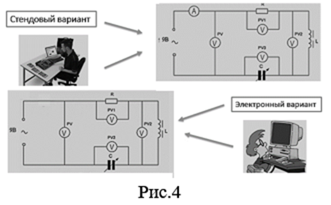 С этой целью созданы рабочие места в лаборатории «Электротехники и электроники». Десять лабораторных стендов (реальная лаборатория) и десять компьютеров с электронными программами моделирования электрических и электронных цепей и программами выполнения электрических и электронных схем. (виртуальная лаборатория). Рис.2,3.