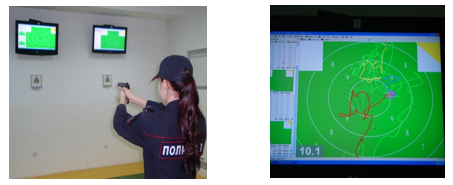Для отработки практических навыков правильной изготовки, хвата и удержания оружия, прицеливания, контроля дыхания, плавной обработки спускового крючка курсанты Нижегородской академии МВД России используют электронный компьютерный тренажер беспулевой стрельбы СКАТТ. Тренажер укомплектован беспроводным оптическим датчиком, вызволяющим имитировать дистанцию стрельбы из пистолета Макарова (ПМ) до 25 метров. На СКАТТе курсанты поэтапно отрабатывают компоненты производства прицельного выстрела, и, что самое главное, визуально (на разноцветной графической схеме) контролируют и психологически осознают достигнутый результат выполнения упражнения. Исходя из конечной отметки выстрела, на экране монитора происходит поэтапный анализ и исправление допущенных ошибок и неточностей (рис. 1).
