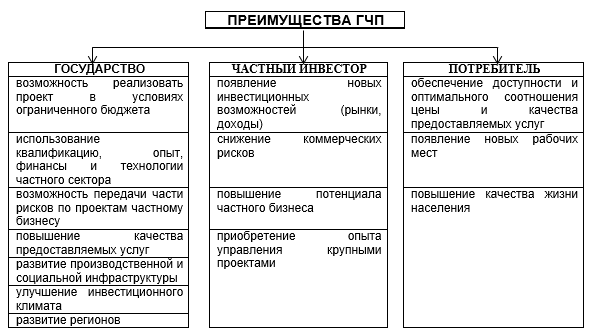 Помимо рисков, ГЧП несет и определенные преимущества, которые отражены в следующей таблице.