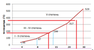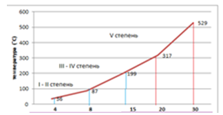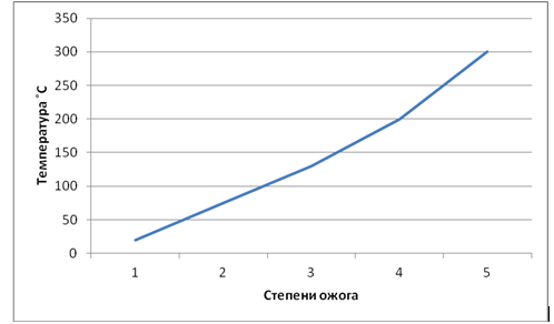 Рис.8. Степени ожога от открытого пламени.30 секунд воздействия..