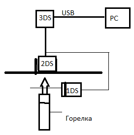 Рис. 2 Схема расположения термодатчиков: 1,2,3 – термодатчики DS18B20