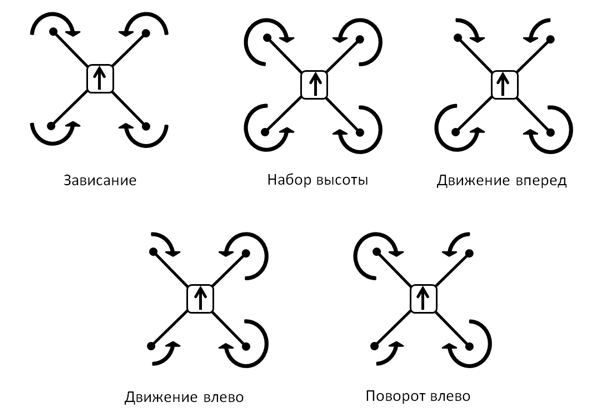Рис. 2. Основные движения квадрокоптера