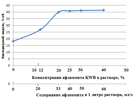 Рис. 4. Зависимость кислородного индекса от содержания афламмита в растворе