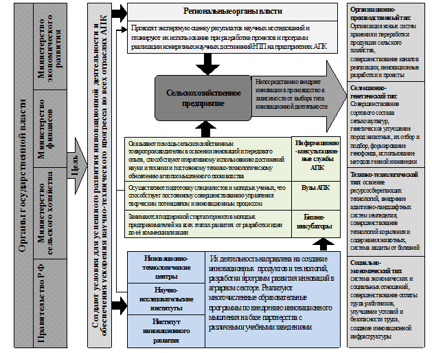 В настоящее время в России существует следующая система управления работами по активизации внедрения достижений научно-технического прогресса: результаты завершенных научных исследований институтов, предусмотренные государственными программами, передаются министерствам и ведомствам АПК, региональным органам, которые проводят экспертную оценку и планируют использование их при разработке проектов и программ реализации конкретных научных достижений на предприятиях. Однако непосредственное внедрение инноваций в производственную деятельность должно осуществляться руководителями и специалистами структурных подразделений организаций.