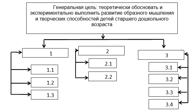 Генеральная цель: Теоретически обосновать и экспериментально выполнить развитие образного мышления и творческих способностей детей старшего дошкольного возраста.