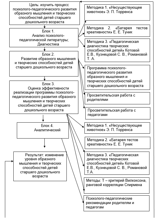 Модель психолого – педагогического развития образного мышления и творческих способностей детей старшего дошкольного возраста представлена нами ниже (см. рисунок 2)