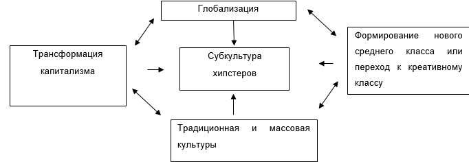 Рисунок 1 - Социокультурная ситуация начала XXI века в аспекте явления субкультуры хипстеров