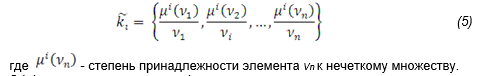 Систему критериев возможно сформировать на основе теории нечетких множеств, где критерий ki ∩ K можно представить в виде нечеткого множества, которое задано на универсальном множестве V таким образом: