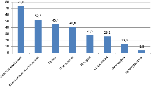 В Тульском филиале РЭУ им. Г.В. Плеханова преподается ряд гуманитарных дисциплин. Какие же из них студенты посчитали самыми полезными? Результат представлен на рисунке 1.