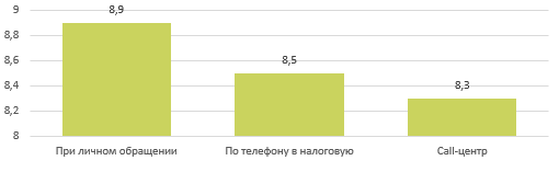 Несмотря на различные каналы предоставления информации о налоговых услугах, налогоплательщики по-прежнему предпочитают получать консультации при личном обращении к налоговым сотрудникам. Удовлетворенность эти каналом информации выше в сравнении с телефонными консультациями и работой call-центра, вероятно в силу того, что личный разговор дает больше возможности для получения ответов на дополнительные вопросы и разъяснений и по неясным пунктам. В то же время, эти данные указывают на необходимость повышения качества информирования по телефону, как технически более доступного и экономного средства (рисунок 4).